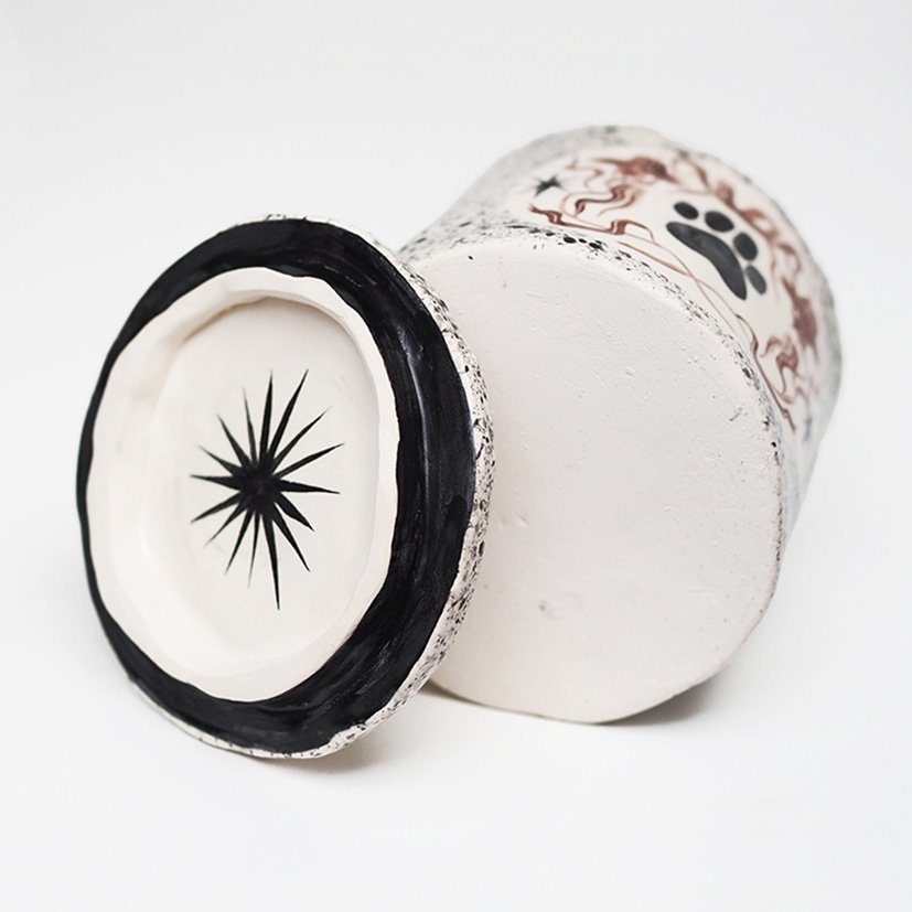 Presented by urn studios, her vessels are curated as contemporary ceramic pet urns for ashes, objects that carry a sense of story, place, and reflection.